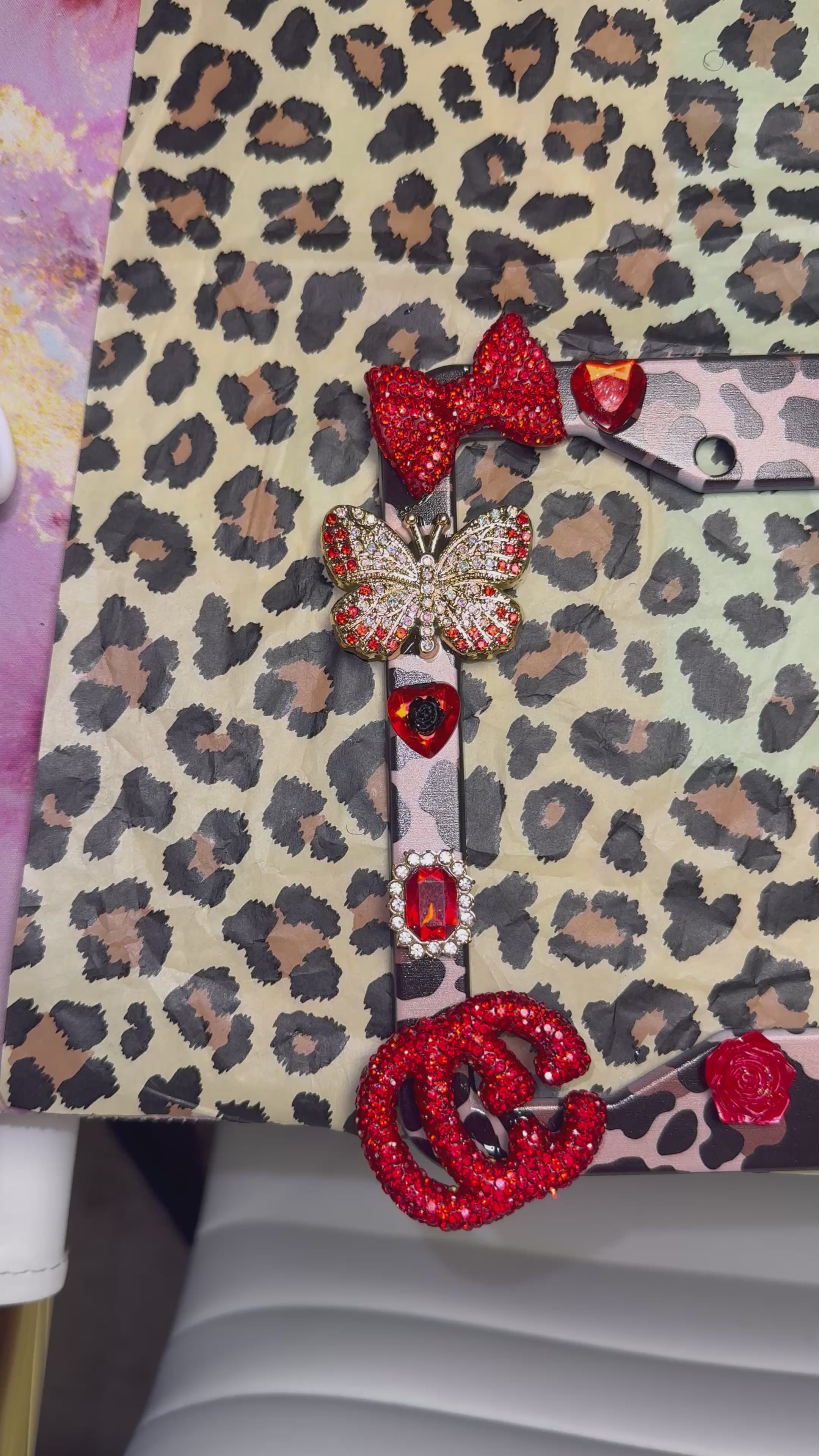 Make a statement with our Cheetah Valentine’s Edition License Plate Tag, designed for bold, luxury lovers. Each tag is handcrafted and custom-styled using a curated mix of red, black, and crystal embellishments that elevate the classic cheetah print into a true statement piece.